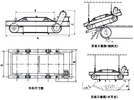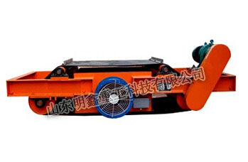 RCDC系列風冷自卸式電磁除鐵器,是在RCDA系列除鐵器的基礎(chǔ)上增加了驅(qū)動電機、滾筒、帶刮板的卸鐵膠帶等組成的卸鐵機構(gòu)。在工作過程中卸鐵機構(gòu)自動將卸鐵皮帶吸附的鐵磁性物質(zhì)卸到集鐵箱內(nèi),無需停電人工清理,實現(xiàn)了除鐵自動化。